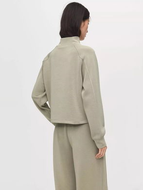 Fuji Fleece Half Popper Jumper In Winter Twig Beige