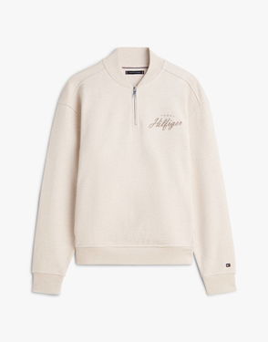 Baseball Collar Quarter-zip Jumper In Beige