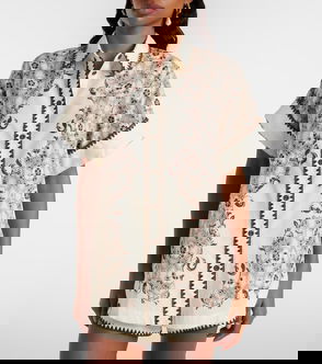 Canela Ruched Side Long Sleeve Top Co-ord In Oatmeal