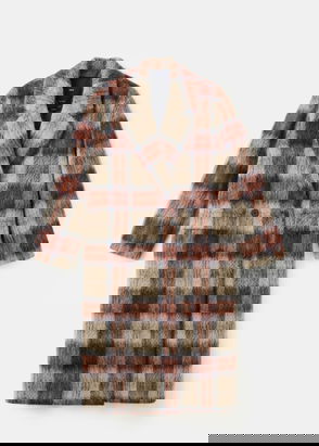 Faux Fur Longline Coat With Exaggerated Collar In Beige