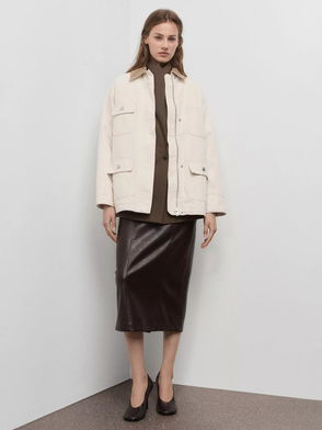 Cotton Mix Barn Jacket With Contrast Collar In Beige