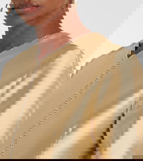 Knitted Scoop Neck Mini Dress With Bell Sleeves In Light Beige