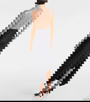 Pleated Knit Maxi Dress With Asymmetric Drop Waist And Fluted Hem In Brown
