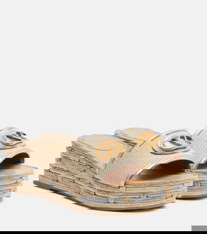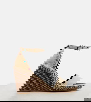 VLogo Leather-trimmed Raffia Slingback Pumps