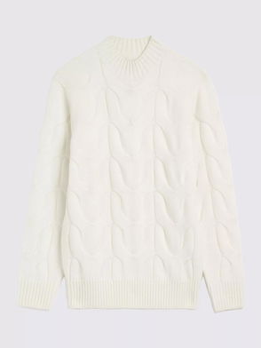 Wool Blend Cable Knit Jumper, Beige