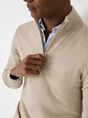 Cotton Mix Knitted Quarter Zip Jumper In Beige