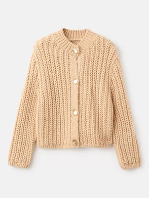 Oatmeal Freya Crew Neck Button Knitted Cardigan