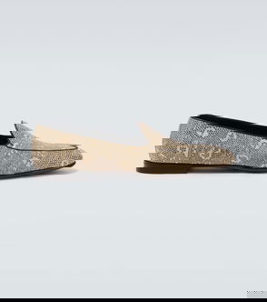 Jordaan Horsebit-Detailed Leather-Trimmed Crystal-Embellished Canvas-Jacquard Loafers