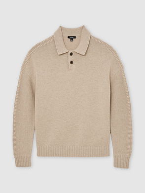 Wool-Blend Half-Button Polo Jumper In Oatmeal