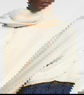 Chunky Rib Wool Blend Scarves In Oatmeal Melange