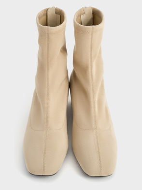 Faux Suede Stitch-Trim Heeled Ankle Boots