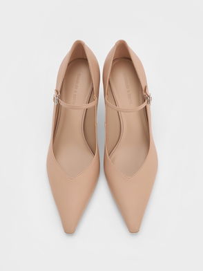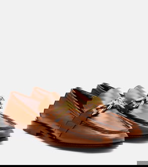 Leather Pointed-Toe Ballerina Shoes In Tan