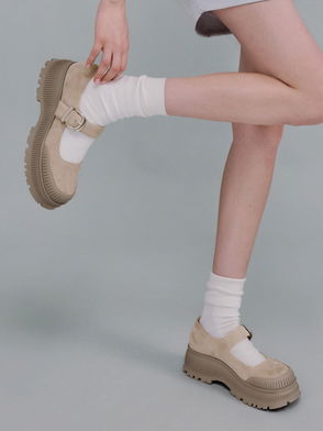 Suede Buckle-Strap Slip-On Sandals In Tan