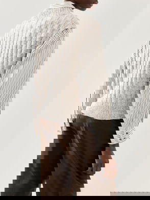 Scarf Neck Blouse With Volume Sleeves In Vintage Beige Stripes
