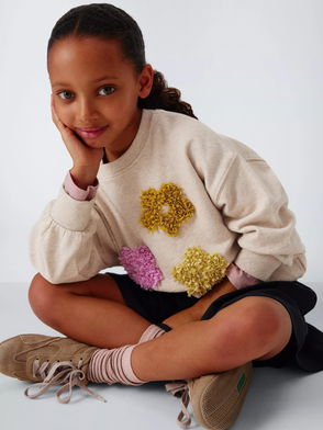 Kids' Textured Flowers Sweatshirt, Oatmeal