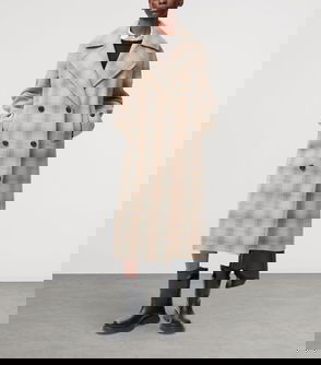 Wool-blend Check Coat