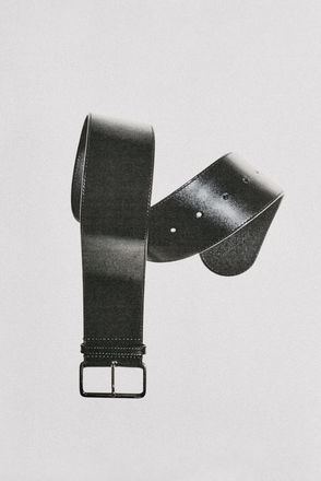 Featuring Kaia Gerber 100% Leather Belt With Oversized Silver Buckle In Black