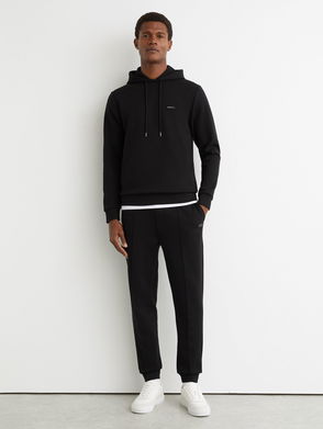 Premium Interlock-Jersey Logo Hoodie In Black