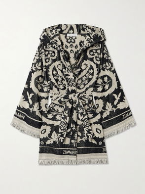 Wanderlust Hooded Fringed Cotton-terry Jacquard Robe