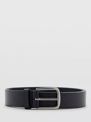 Men's Silver-Tone Buckle Leather Belt