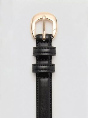 Rounded Buckle Slim Belt, Black