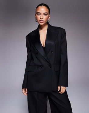 Featuring Kaia Gerber Premium Double Breasted Tailored Blazer Co-ord In Black