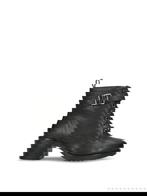 Kensington Cuff Leather Lace Up Calf Boots, Black
