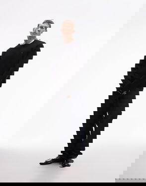 Promi Wool Blend Slim Tuxedo Trousers, Black