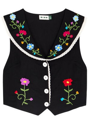 Monica Ombre Floral-Embroidered Woven Top