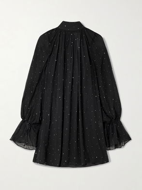 Roux Crystal-Embellished Gathered Crepon Mini Dress