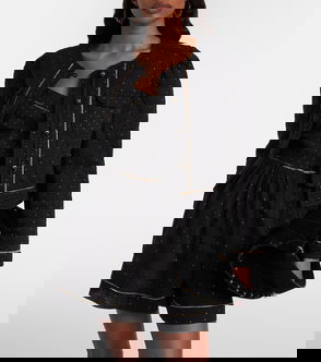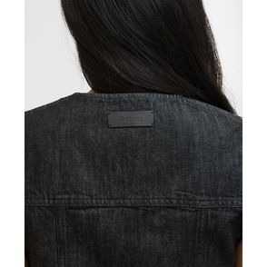 Denim Placed Studs Tie Belted Short Sleeve Full Midi Dress