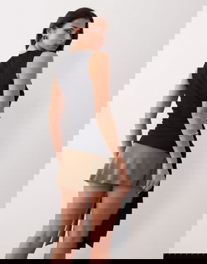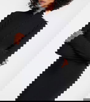 Plus Size Figure Form Pu Mix Tab Detail Pleated Knit Midi Dress