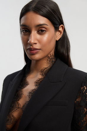Compact Stretch Lace Mix Tailored Single Breasted Blazer