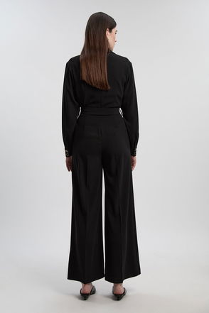 Tailored Crepe Asymmetric Buckle Detail Wide Leg Trouser