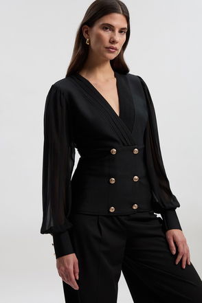 Figure Form Woven Mix Military Button Blazer Knit Top