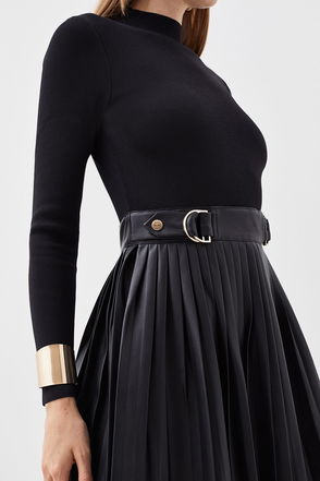 Knitted Skater Dress With Pu Detailing