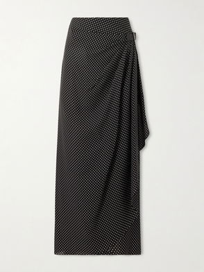 Buckle-Detailed Wrap-Effect Draped Polka-Dot Silk-Chiffon Midi Skirt