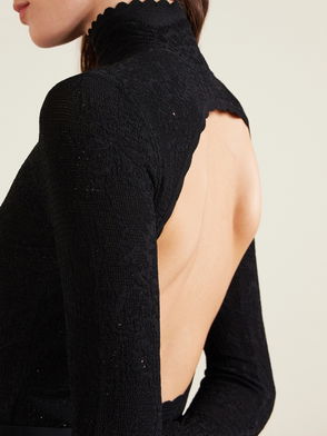 Open-back Lace Turtleneck Bodysuit