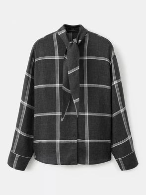 Candy Check Tie Neck Top, Black