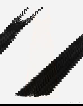 Tulle Midi Slip Dress With Lace Inserts