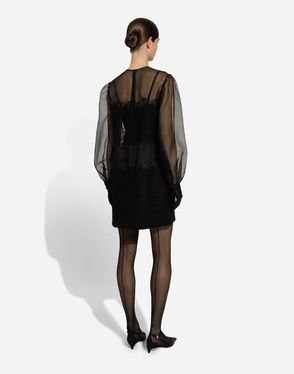 Short Organza Dress With Lace Inlay