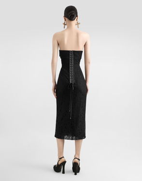 Calf-length Satin And Lace Dress With Corset Details