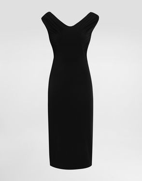 Calf-length Dress In Jersey Milano Rib With Draping