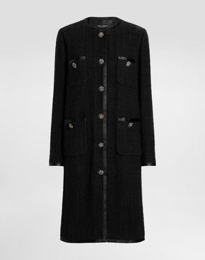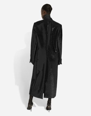 Wool Gabardine Coat With All-over Rooster Feather Embellishment