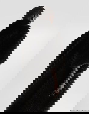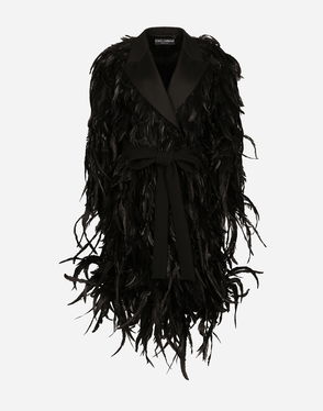 Double-breasted Wool Crepe Coat With Belt And Rooster Feather Embellishment