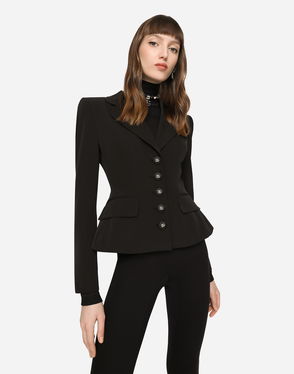 Short Double-breasted Wool Gabardine Tuxedo Jacket