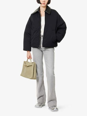 Leather-trimmed Quilted Shearling Down Bomber Jacket