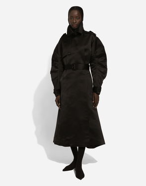 BELTED DOUBLE-BREASTED CREPE AND LACE COAT