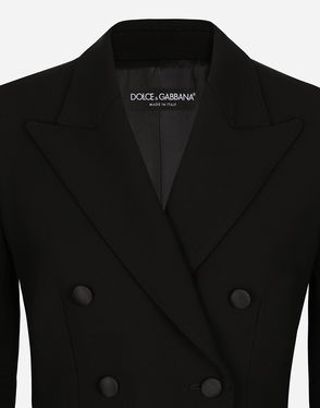 Short Double-breasted Wool Gabardine Tuxedo Jacket