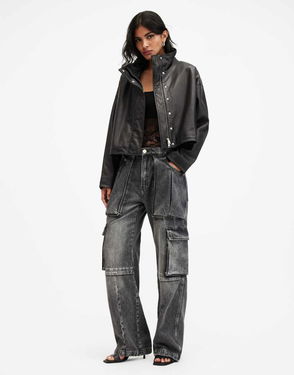 Abercrombie & Fitch Wool Blend Button Through Short Jacket In Black